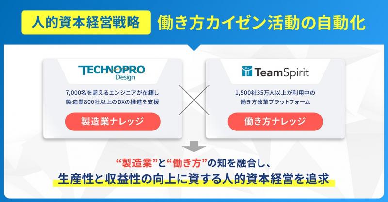 テクノプロ・デザイン社とチームスピリットが製造業DX推進で協業開始 ―“製造業”と“働き方”の知を融合し、生産性と収益性の向上に資する人的資本経営を追求―